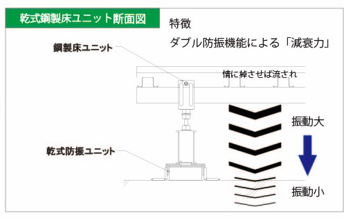 建築物の多様化や高機能、重層化に伴い振動遮断能力を求められる床下地で、湿式浮床が設置できないシーンで活躍しています。
