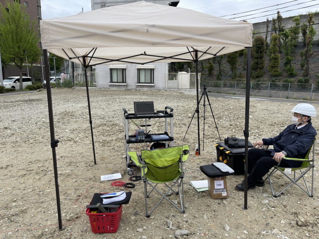 □ 屋外交通振動調査「設計時の建物への地盤振動の影響の確認」高速道路と国道に挟まれた敷地の地盤振動調査