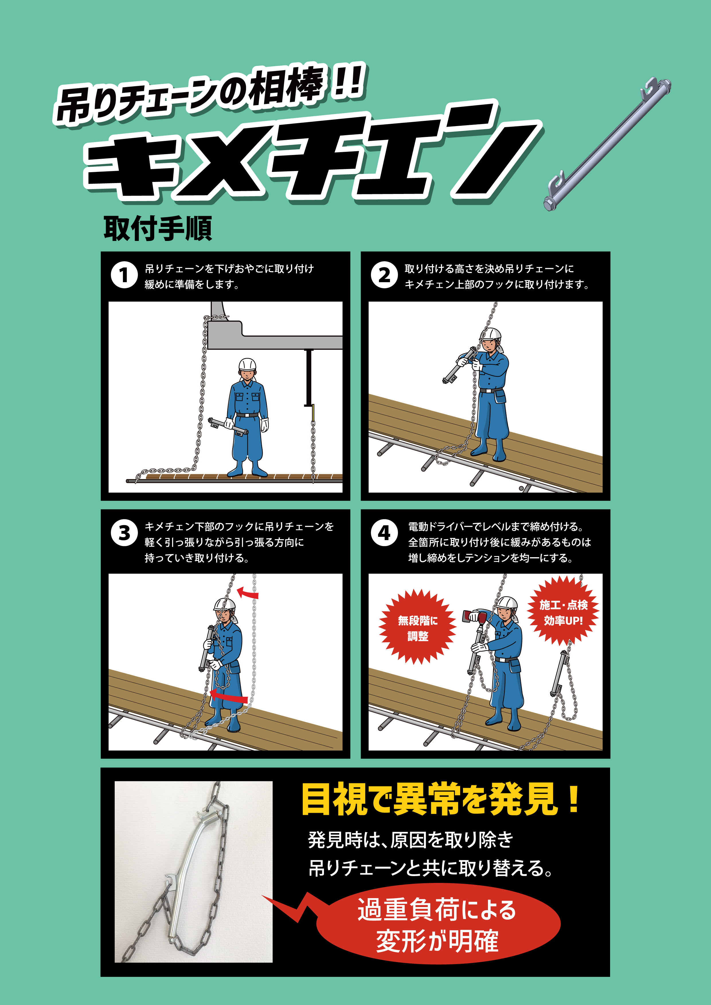 特にチェーンは一度架設すると安易に取り換えることが困難であり「リース品」という特徴から繰返し使用されているため、チェーン一つ一つに個性があります。例えば